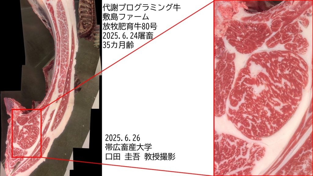 上記の写真は実際のお肉の写真ですが、放牧とは思えないほどサシが入っていて、研究者の皆さんも本当にビックリでした‼