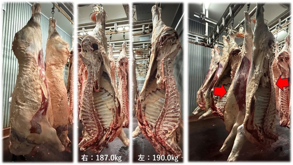 今回、そのうちの1頭を屠畜。実際に中を開けて見るまでどんなお肉になっているか全くわからない状況でした。でも屠畜してみると・・・「放牧でここまで育っているというのは、その経緯を知っている人からすると、素晴らしいお肉に仕上がっているのではないでしょうか」と このプロジェクトでお肉の評価をしている帯広畜産大学の口田先生からの評価を頂きました⭐